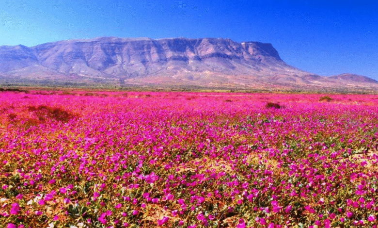 En el mundo existen pocos lugares donde se puede presenciar el fenómeno natural del desierto florido: Australia, Estados Unidos, Perú y Chile. Sin embargo, es en Chile donde este espectáculo adquiere una intensidad especial, mientras mantos de flores violetas, amarillas y blancas cubren la superficie del desierto de Atacama, el más árido del planeta, transformando los paisajes áridos en todo un espectáculo de colores y vida.