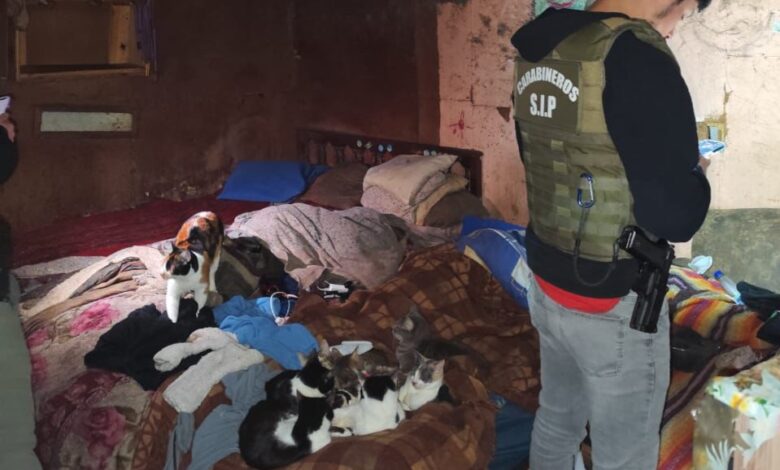 Sin comida, con escaso higiene y algunos encerrados incluso en el baño, fueron encontrados 35 gatos y 14 perros al interior de una vivienda en el sector de Tierras Blancas, en Coquimbo. El hallazgo, fue la conclusión de un trabajo investigativo desarrollado por carabineros SIP de la Segunda Comisaría, quienes llegaron hasta el lugar tras recibir diversos antecedentes que alertaban de la existencia de ruidos y malos olores en la vivienda.