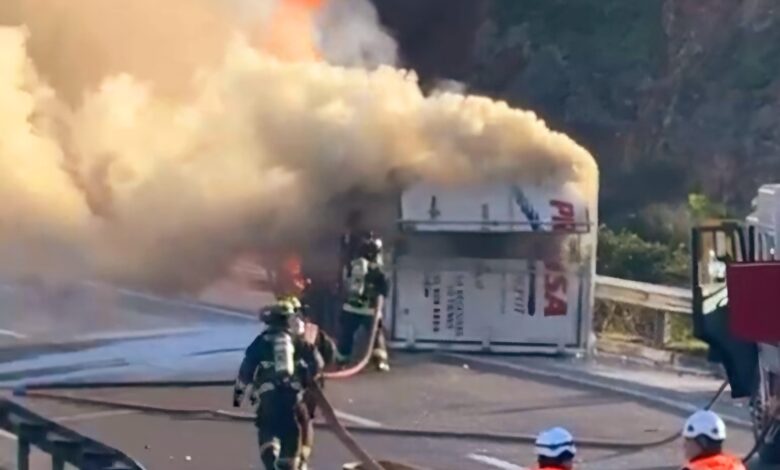 Camión vuelca e incendia en la ruta: conductor y acompañante resultan con lesiones leves